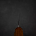 El AUS-8 es un acero inoxidable con molibdeno económico, muy popular entre los fabricantes de cuchillos. Recomendamos los cuchillos de acero con molibdeno para quienes están empezando, gracias a su buen precio, facilidad de afilado y gran resistencia a la corrosión. Además, el AUS-8 contiene vanadio, lo que mejora la resistencia, dureza y duración del filo. El cuchillo presenta marcas visibles del proceso de forjado a mano (pequeñas hendiduras redondeadas en la hoja), que le otorgan un acabado hermoso y, al mismo tiempo, evitan que los alimentos se adhieran a la superficie de la hoja.